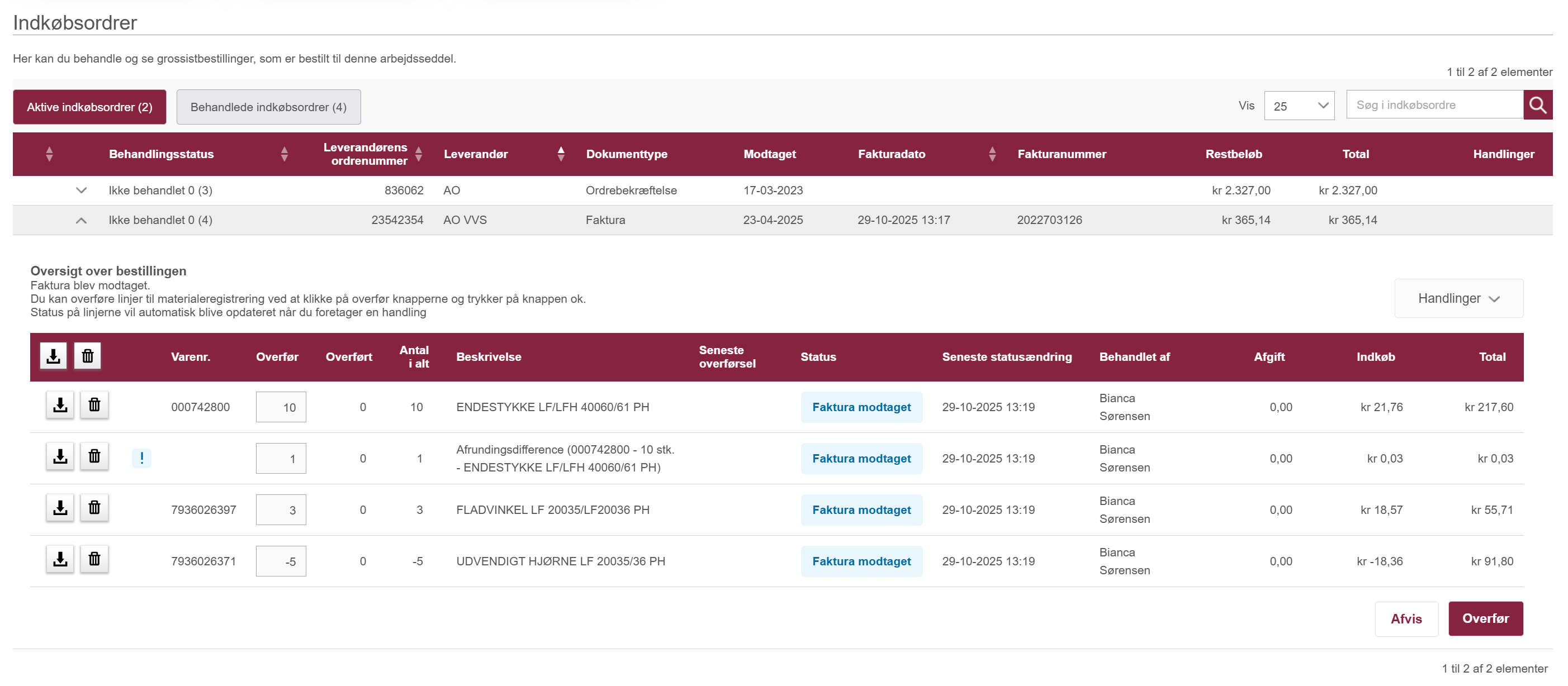 Fordelen ved ordrebekræftelser er, at de typisk kommer ind i Minuba hurtigere end indkøbsfakturaer, da grossisten først sender indkøbsfakturaer om natten eller dagen efter.